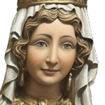 A la izquierda, la estatua de la Virgen del santuario del monte Bérico: la tradición la atribuye a Nicolò de Venecia. Fue realizada entre 1428 y 1430 y colocada en el altar mayor ya en los orígenes del santuario. Fue coronada el 25 de agosto de 1900 por el patriarca de Venecia Giuseppe Sarto, futuro papa san Pío X. Tras una serie de intentos de robo, se colocó sobre la cabeza una copia de la corona original; arriba, el altar mayor y el nicho que alberga la estatua de la Virgen